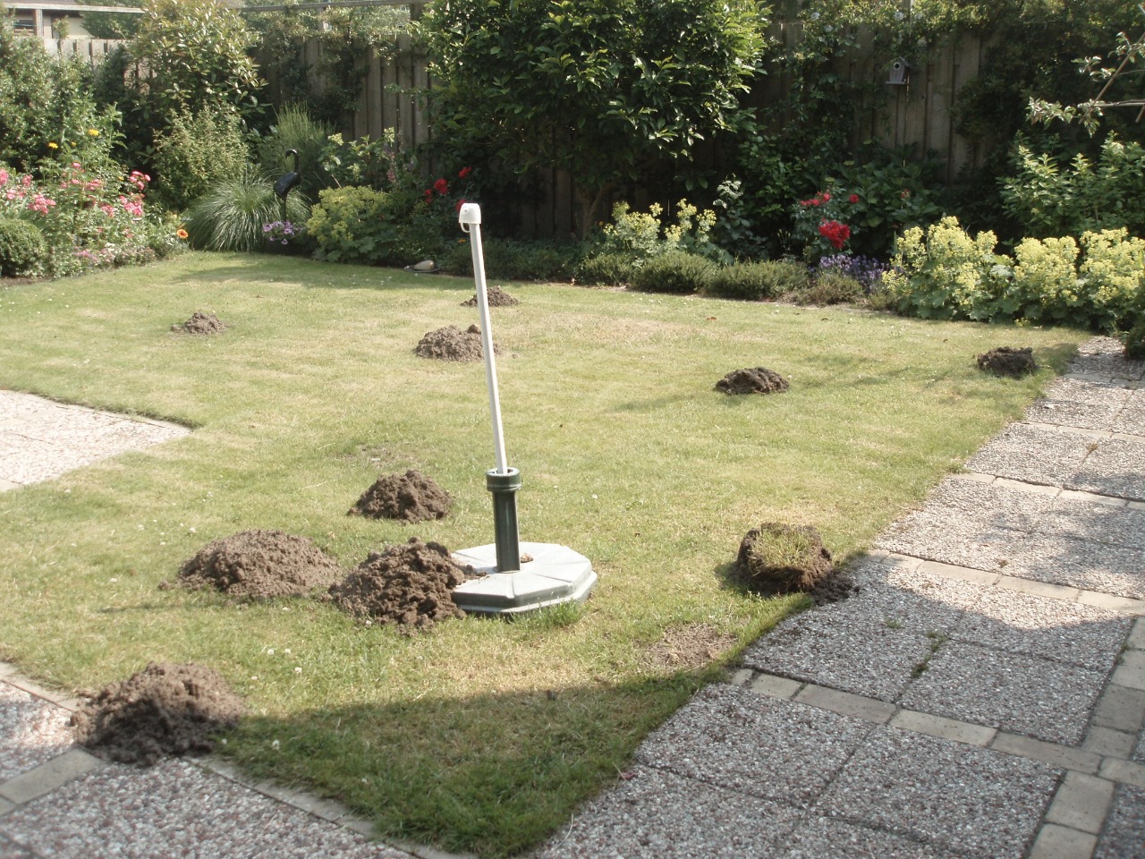 Zo’n twintig jaar geleden had ik wel een fraai gazon. Maar op een gegeven moment kreeg ik bezoek van een lief beestje, een mol. Af en toe kwam er een hoopje aarde en was ik regelmatig bezig om het hoopje weer weg te werken. Maar toen wij indertijd na drie weken vakantie weer terug in ons domein kwamen, schrokken we ons wezenloos. Er was niet één hoopje aarde, maar mijn gazon was vernield door dat kolerenbeest.
