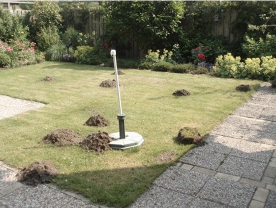 Zo’n twintig jaar geleden had ik wel een fraai gazon. Maar op een gegeven moment kreeg ik bezoek van een lief beestje, een mol. Af en toe kwam er een hoopje aarde en was ik regelmatig bezig om het hoopje weer weg te werken. Maar toen wij indertijd na drie weken vakantie weer terug in ons domein kwamen, schrokken we ons wezenloos. Er was niet één hoopje aarde, maar mijn gazon was vernield door dat kolerenbeest.